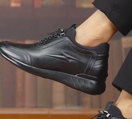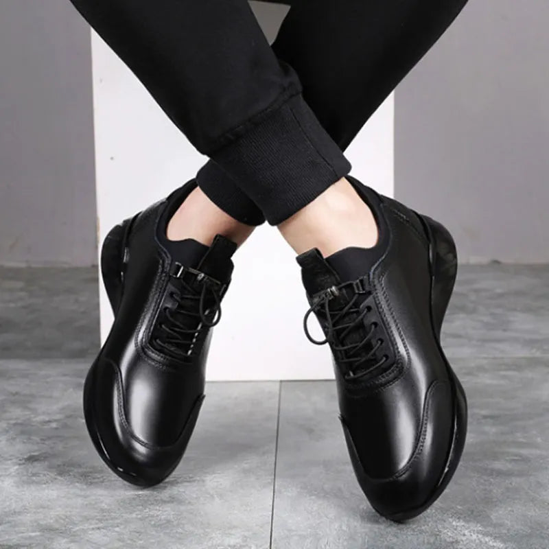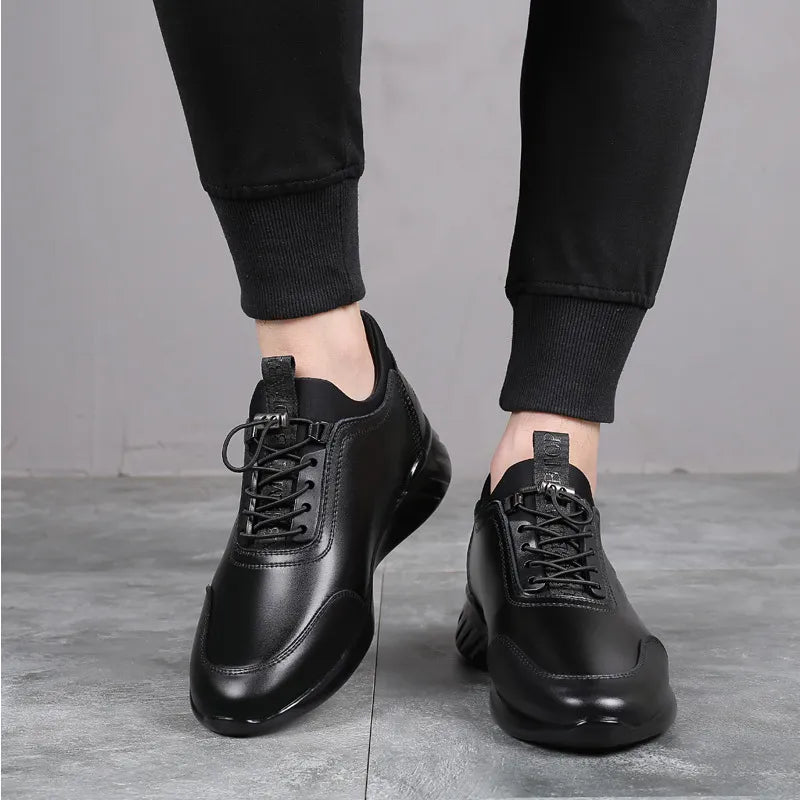Men's Vulcanize Shoes are stylish and versatile casual sneakers made from durable PU leather. Designed for both gym and business use, these shoes feature a height-increasing sole that adds 6-8 cm, enhancing stature and confidence. The sleek design blends fashion with function, making them perfect for everyday wear.
