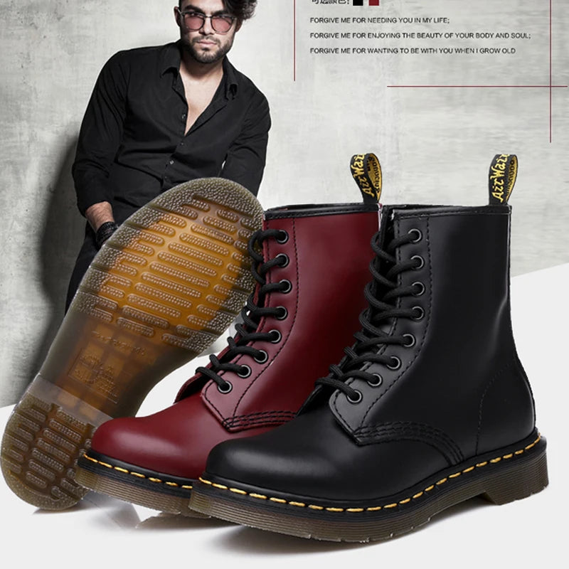 Genuine Leather Classic Six-Hole Boots combine British-style elegance with rugged functionality, perfect for outdoor adventures or urban settings. Featuring high-quality leather, a comfortable ankle-high design, and durable six-eyelet lacing, they provide a secure fit and timeless look. Suitable for both men and women (sizes 35-48), these versatile boots offer comfort, style, and durability for any occasion.