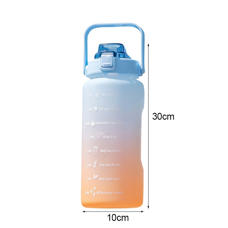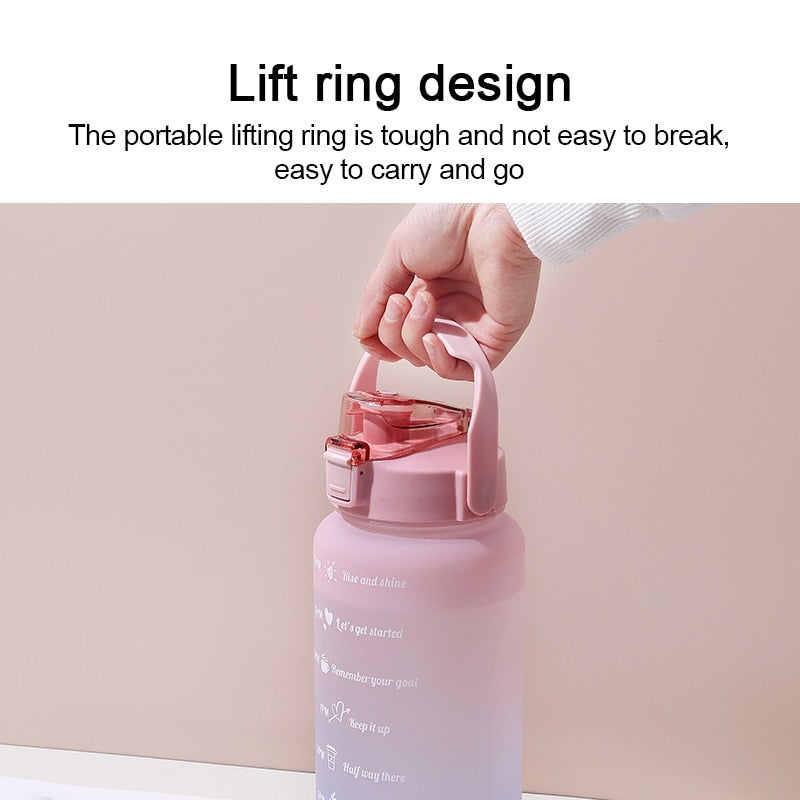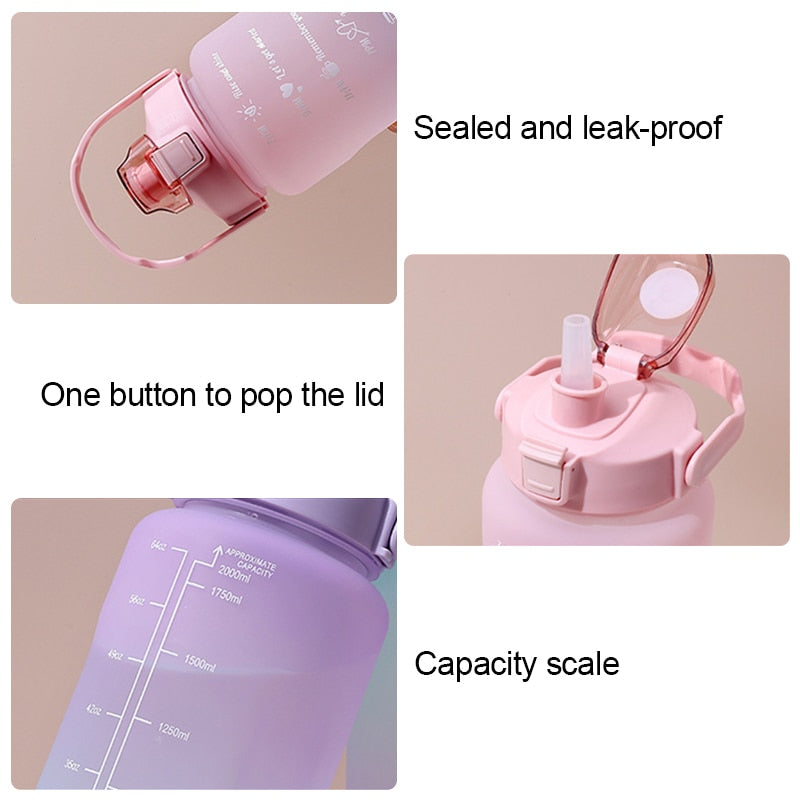 2L large-capacity water bottle with bounce cover and straw, time scale reminder leak-proof frosted cup, outdoor sports and fitness